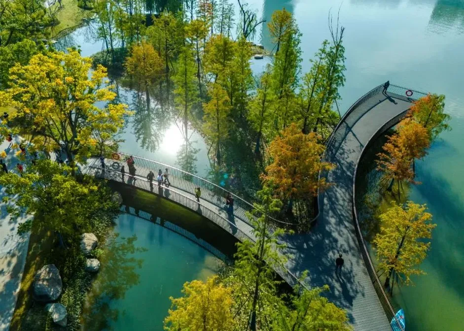 良渚玉湖公园把自然景致、文化瑰宝与现代都市生活无缝对接,让悠久历史文化与当代公共空间精妙融合。凭借多专业协同开展与精心设计,确保景观衔接流畅自然、民众休闲娱乐丰富多元的同时,深度挖掘并彰显文化底蕴。良渚玉湖公园已然成为一个融合自然、文化与社区生活的新地标,为本地居民和外来游客倾力打造出极具活力、满溢生趣且互动性极佳的共享空间新典范。