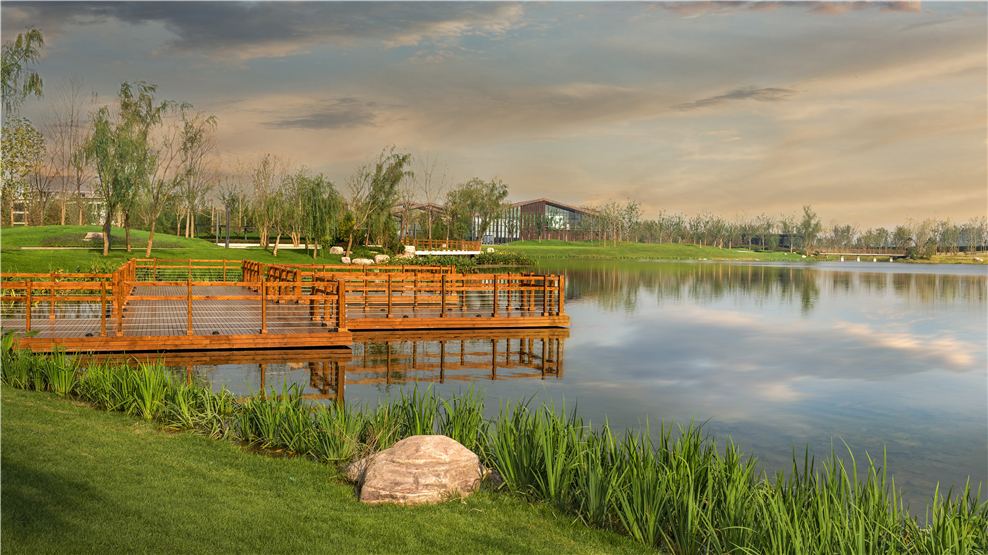 以生态、体验、科技为主导,充分考虑核心湖区对未来周边区块的辐射效应,依托环湖慢行系统形成多种功能体验为一体的滨湖时尚活力中心.通过一条红色智慧慢行道将整个公园的各个功能领域进行了有机串联。建立完善的标识、服务系统设计,设置三级服务设施,辐射周边区域。为城市居民提供交流、散步、健身、儿童娱乐等多种配套功能。