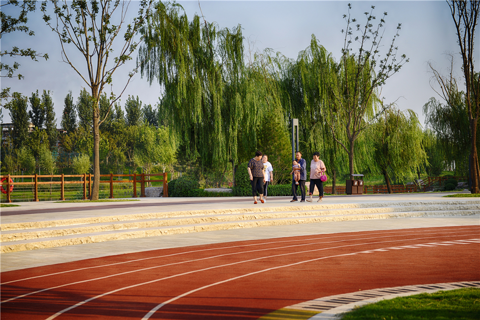 布局方式“蓝脉引领,绿化渗透,功能植入”由外到内分别形成外层城市空间活动带、中层绿色有氧漫步带、内层蓝色生态体验带。为打造武陟海绵城市做出良好的开端。